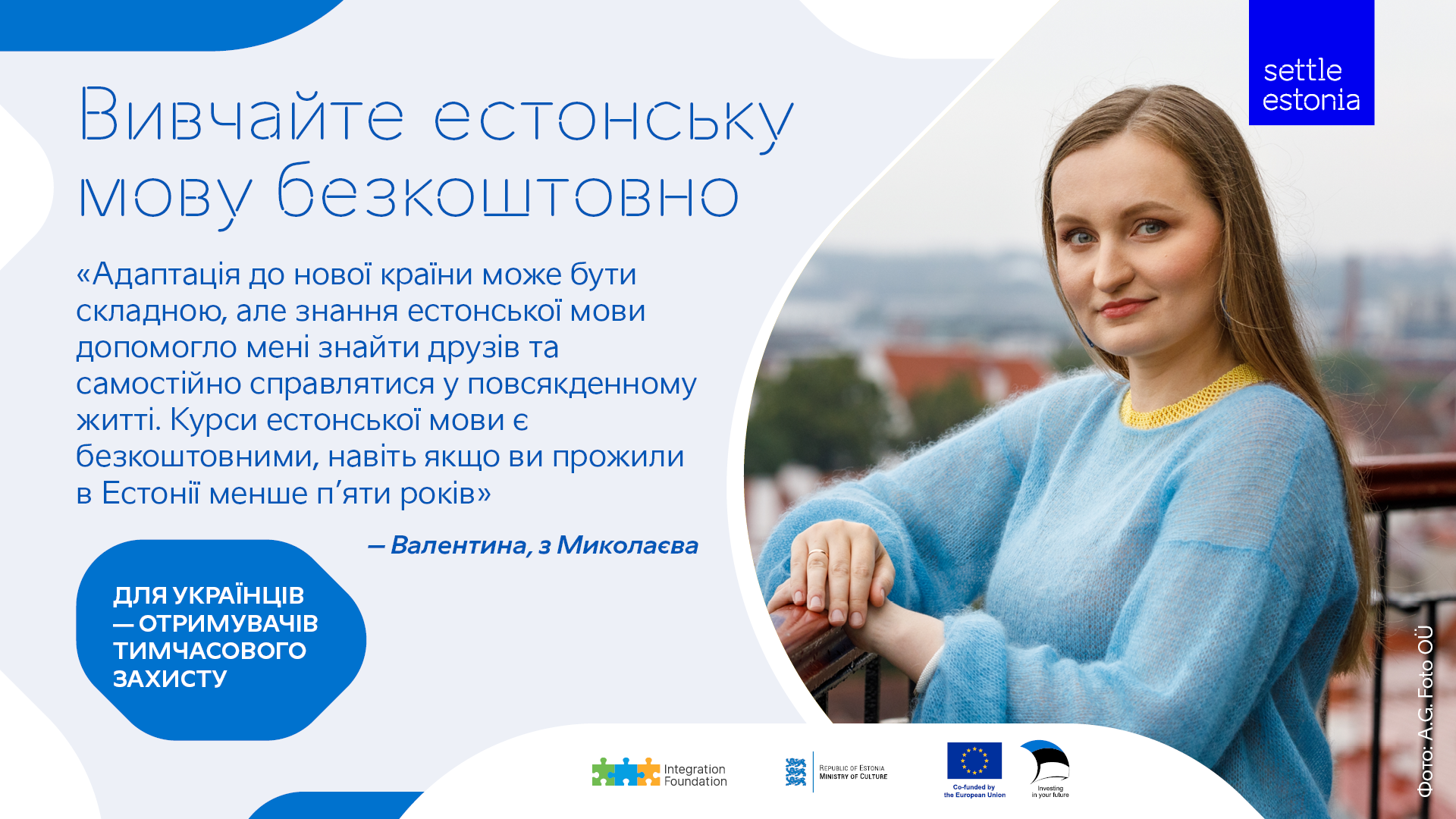 З понеділка, 6 жовтня, на сайті програми адаптації Settle in Estonia відкриється реєстрація на безкоштовні курси естонської мови для отримувачів тимчасового захисту. Крім вивчення мови, українських біженців також запрошують на адаптаційні тренінги, що знайомлять із життям та суспільством Естонії.